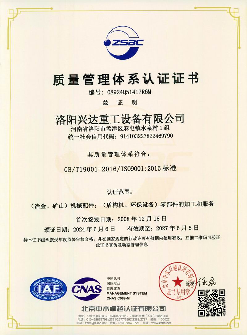 質(zhì)量管理體系認證證書